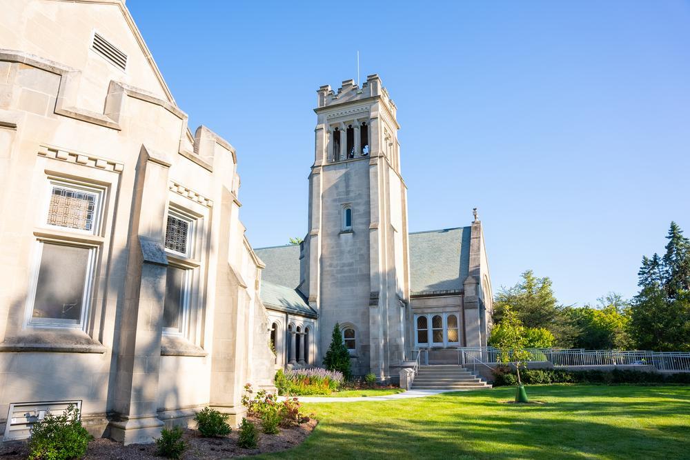 The Lily Reid Holt Memorial Chapel, built in 1899, offers a breathtaking setting for wedding ceremonies on the Lake Forest College campus. Adorned with stunning Tiffany-stained glass windows and elegant light fixtures, the chapel is filled with natural light, creating a romantic and timeless atmosphere. Its serene beauty provides the perfect backdrop for your unforgettable day.