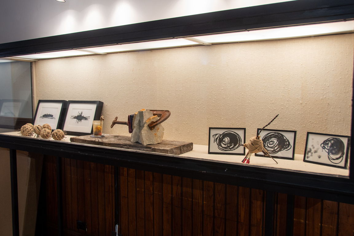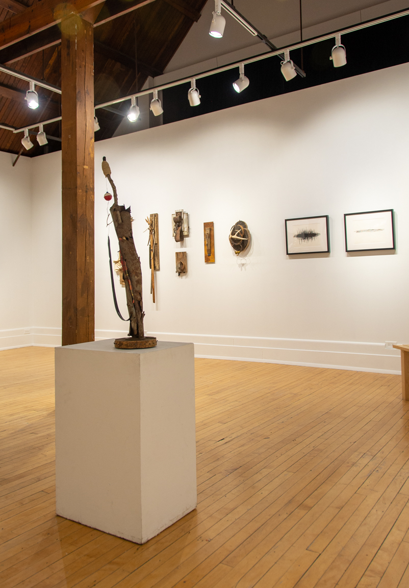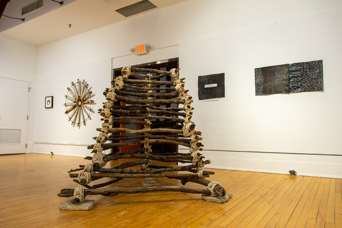 Suggestions of Gravity is a multidisciplinary exhibit of found-object sculptures, abstract drawings and land art documentation, all inspired by immersions in the Midwest landscape.