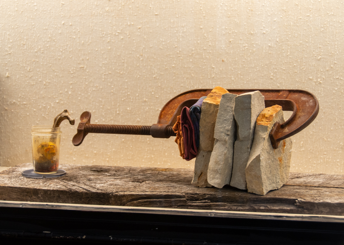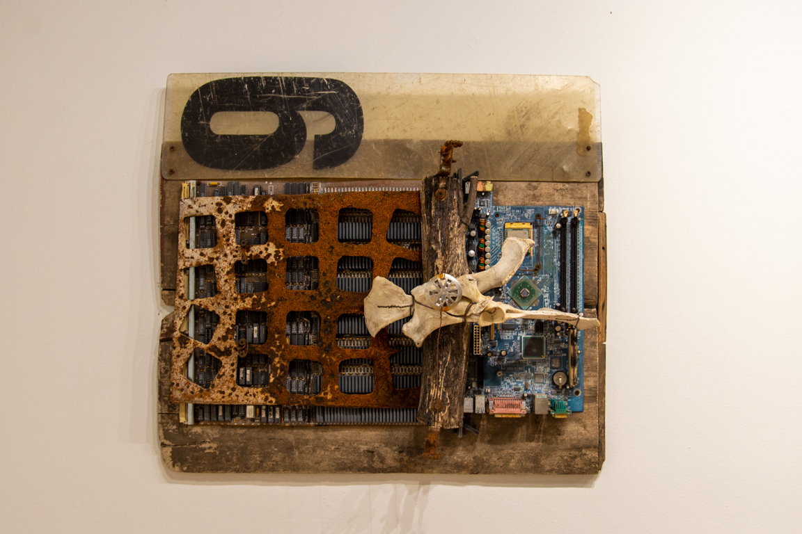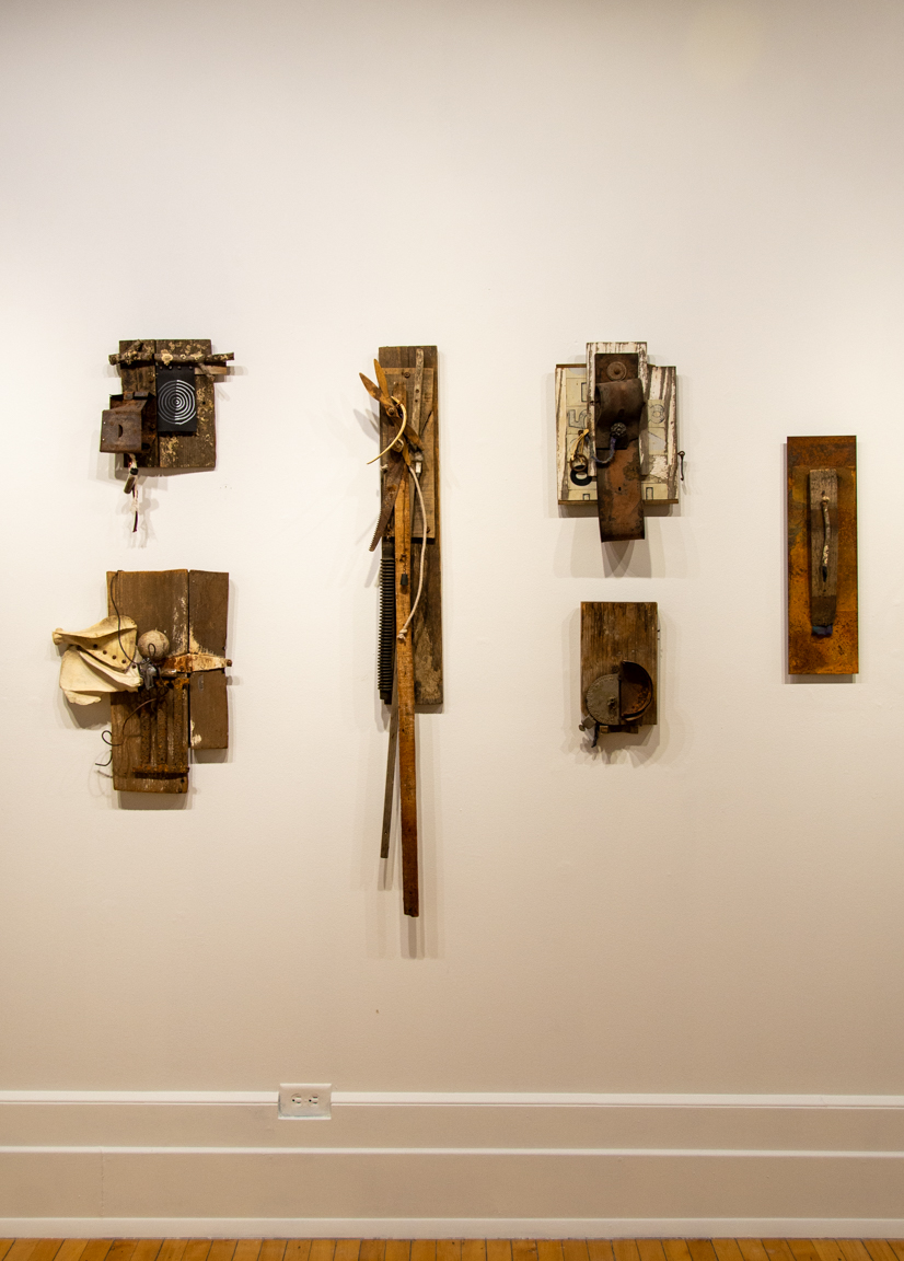 The sculptures combine weathered natural and manufactured objects in the search for visual harmony arising from advanced material decay. Although I intend these works to be beautiful, I also mean to comment on the larger relationship between contemporary culture and nature.