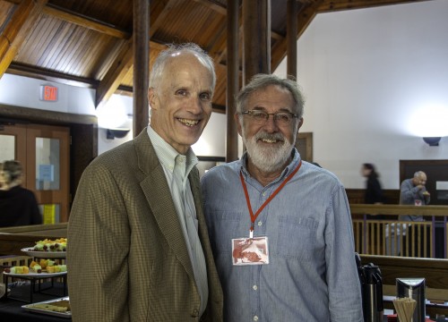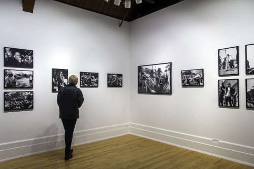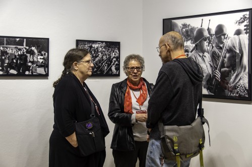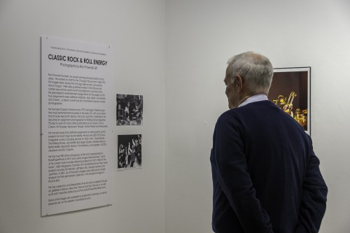 While still a student at Lake Forest College, Ron Pownall ’69 was hired by the Chicago Tribune to photograph anti-Vietnam protests during the Democratic National Convention in Chicago in 1968. For his 50th reunion during Homecoming 2019, classmates, current students and faculty gathered to view some of the images he captured during that turbulent time in the Sonnenschein Gallery. In the Albright Gallery, they admired photos from his subsequent work over a 30-year period documenting rock and roll icons of the ’60s and ’70s in the Classic Rock and Roll Energy exhibit.