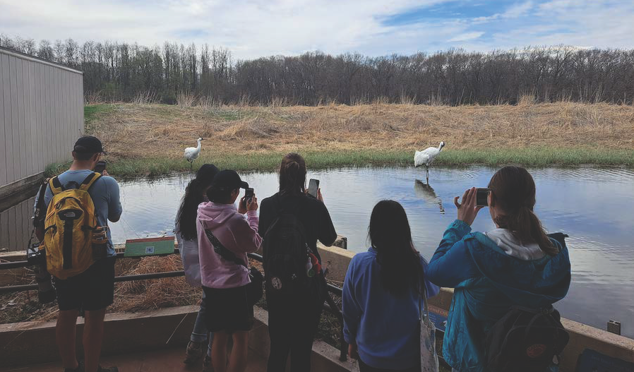 ES484: Conserving & Restoring Native Species senior seminar class visiting the International Crane Foundation to see the endangered Whooping Cranes