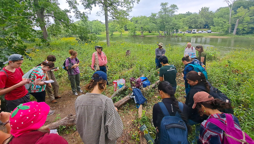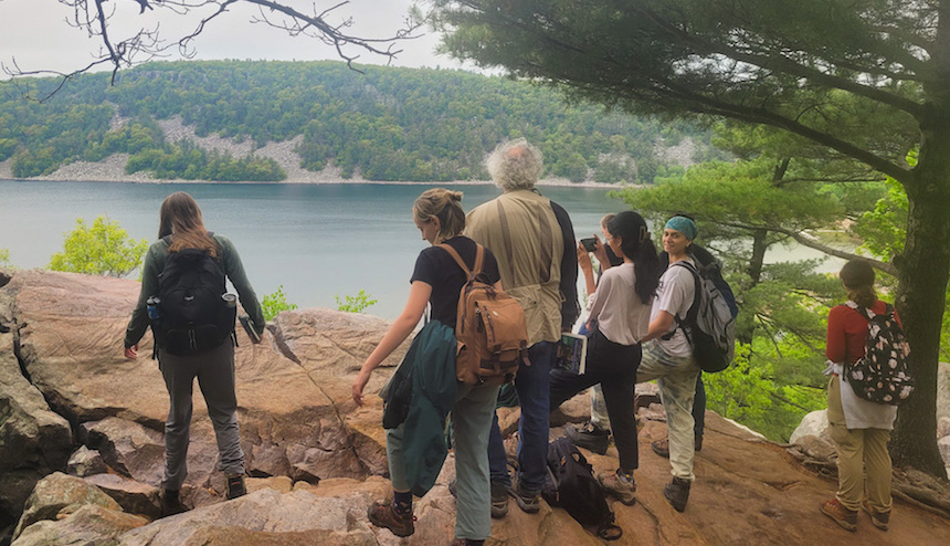 ES204: Summer Flora of the Great Lakes students on a botanical expedition overlooking Devils Lake