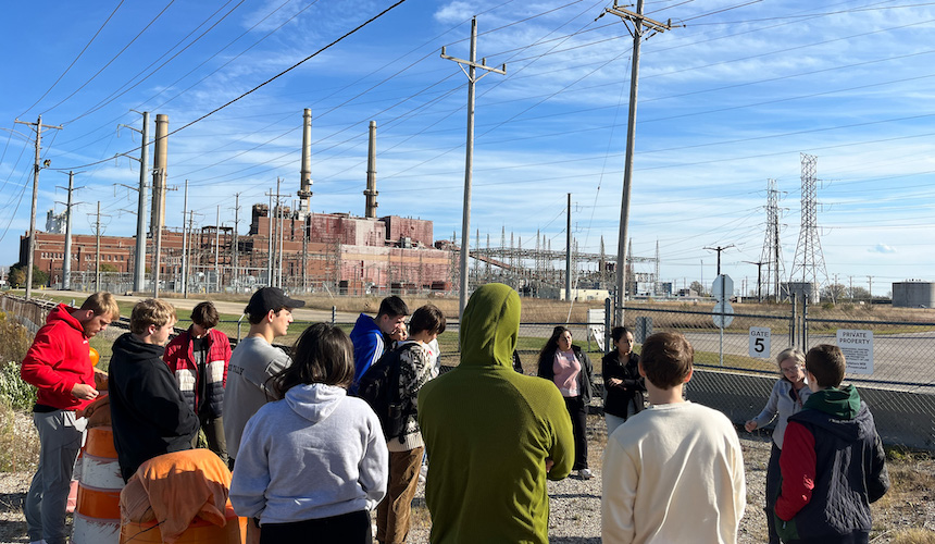 Students visiting the retired Waukegan Coal Plants in their ES335: Environmental Justice course