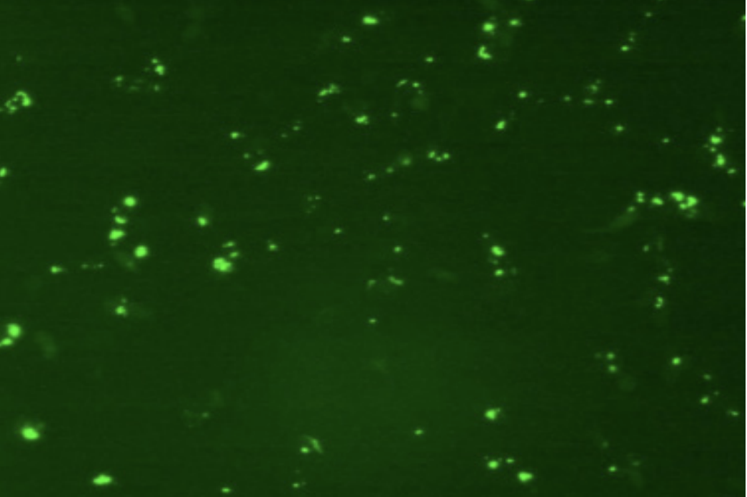 Figure 1.Visualization of virus transfection. GFP-Card (contains the self-made plasmid) medium magnification of lentivirus transfection in 293T cells (human kidney cells).