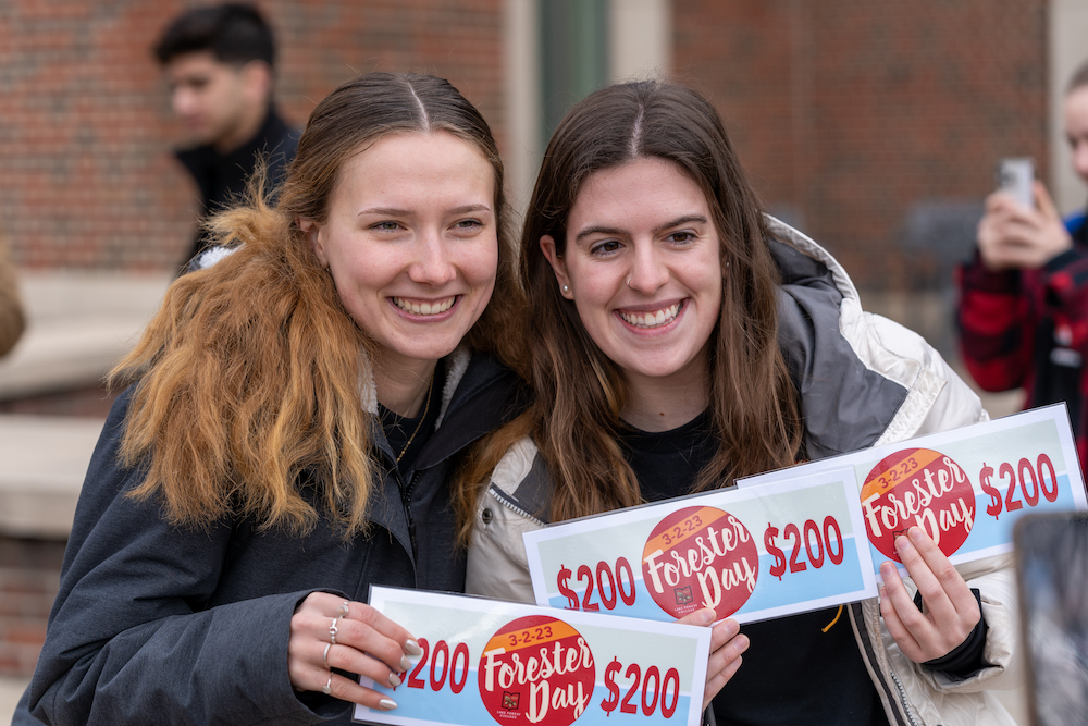 Several Forester Day events followed, including the first-ever live telethon, talks by College leaders, and an in-person Forester Day celebration in the Mohr Student Center. where alumni, students, faculty, staff, and friends celebrated the successful day of giving.
