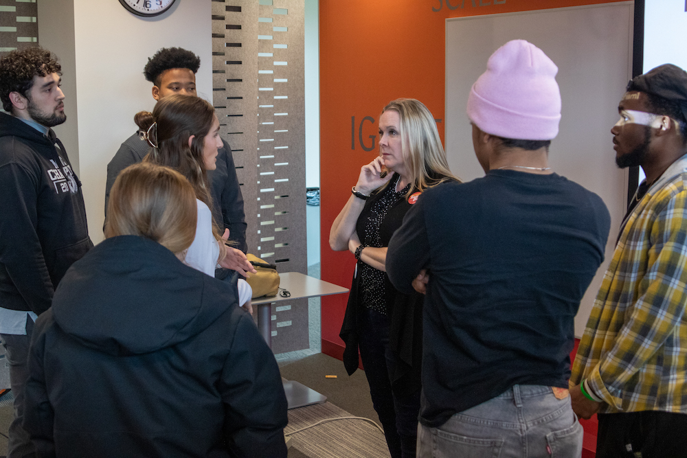 A lunchtime event followed with Kristin Graham ’94 presenting her inspiring talk, “How to ‘Yes, And’ Your Passion, Career, and Life,” from scholarship student to dot-com tech exec to entrepreneur. Graham shared the power of “Yes, And” to amplify a liberal arts education, build a powerful network, and make one’s own way.“When somebody else believes in you, believe them,” she told the crowd gathered in the Oppenheimer Center and many more who viewed the livestreamed event. The interactive conversation demonstrated the power of the Lake Forest College alumni network in action.