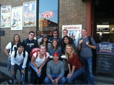 Mimi Cowan's students pose for a picture in front of Spin nightclub at the corner of Belmont and Halsted at the end of one...