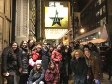 19 lucky English majors, accompanied by Associate Professor of English Josh Corey, were able to travel together into the city to see the smash-hit musical Hamilton on a frosty, January evening.