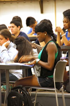 In another session, students were given a reading assignment to prepare for a class discussion. This activity resembled what a college class might be structured like, such as the First-Year Studies course, said Leslie Turner, assistant director of the Office of Intercultural Relations.