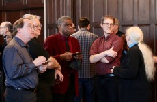 Faculty and staff gathered in Calvin Durand Hall to celebrate the careers of Director of Library and Information Technology Jim Cubit, Associate Professor of English Judy Dozier, Foster G. and Mary W. McGaw Professor in the Life Sciences Anne Houde, Laurence R. Lee Family Professor of Biology Doug Light, Professor of French Jean-Luc Garneau, and Professor of Economics and Business Les Dlabay as they retire.