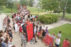 More than four hundred students matriculated with the Class of 2017 on Wednesday, August 28. Faculty, staff, and students formed a gauntlet through Middle and North Campuses to greet the new Foresters with high fives, cheers, loud horns, and a little cowbell as they made their way to First Presbyterian Church for the Matriculation Ceremony.