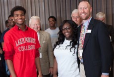 Bennett met with Lake Forest’s incoming first-year students Marquis Douglas and Kiana Porter, both members of The Phoenix Pact, at the program’s kick off in June, where U.S. Secretary of Education Arne Duncan announced the new initiative with North Lawndale’s president.