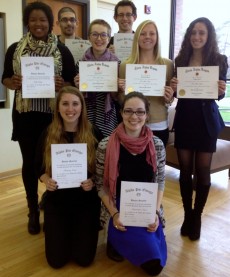 Eight students were inducted into the national religion and theater honor societies during a combined ceremony in April 2015.