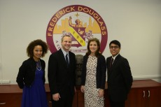 Josh Bill '04 (second from left) is the National History Teacher of the Year. Here, he poses with Caroline Kennedy and two...