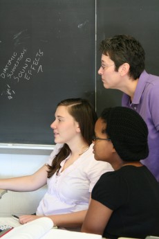 Chemistry professor Dawn Wiser instructs Leah Frenette '12 (left) and Thandeka Mabuza '12 during their lab.