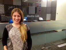 Fridholm is a media lab assistant at the newly established media center at the Lake Forest Public Library. She is helping people play music on GarageBand and convert old video tapes to DVDs.