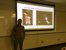 Argentine musician and audio engineer Martin Mikulik visited Prof. Kripper’s Intro to Latin American Culture class last week. He talked about the importance of Tango music for Argentine culture as well as the power of music as a tool for resistance during the last Argentine dictatorship. The class listened to different songs and analyzed their lyrics as well.
