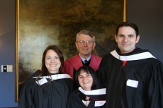 Friends, family, faculty, and alumni gathered together at Glen Rowan house on Friday, May 10, to witness three MLS graduates receiving their graduate hoods at a pre-commencement ceremony and reception.