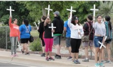 Border Studies students participate in a vigil at the official border entry in Douglas, Ariz.