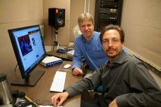 Professors Don Meyer (left) and Davis Schneiderman created an audio-visual experience linked to a Chicago play.