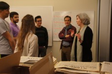 Darryl McGrath, a former professor at University at Albany, SUNY, and Michael Bologna, a staff correspondent for Bloomberg BNA in Chicago, visited with staff members Sophia Goss ’17, Josh Kim ’17, Dominick Scafidi ’17, and Bernie Reyes ’18.