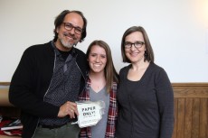 The cover artist, Nelson Ramírez de Arellano Conde, meets two of the book designers, Rachel Tenuta ’15 and Emma O'Hagan.