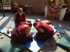 The visiting monks from Drepung Gomang Monastery in South India will conduct a ritual destruction closing ceremony at 11 a.m. on Saturday, Oct. 4, in which the mandala’s colored sand will be removed in a specific order and walked to Forest Park Beach, where it will be released into Lake Michigan and back into nature.