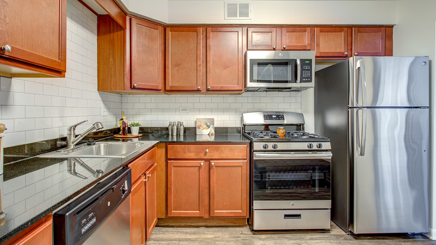 4-person units are available and include a full kitchen, common living space, air conditioning, and more. The apartment complex also has an on-site fitness facility, business center, and other common amenities. The complex is within walking distance of the Metra train station.